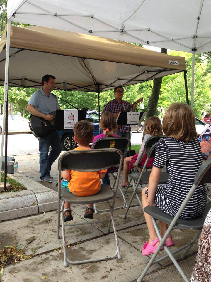 First, we played at Capitol Kids and Dreambank on the capitol square in Madison as part of the first Make Music Madison, a city-wide celebration of music. We played a special set of kids music, including new songs we’ve been recording.